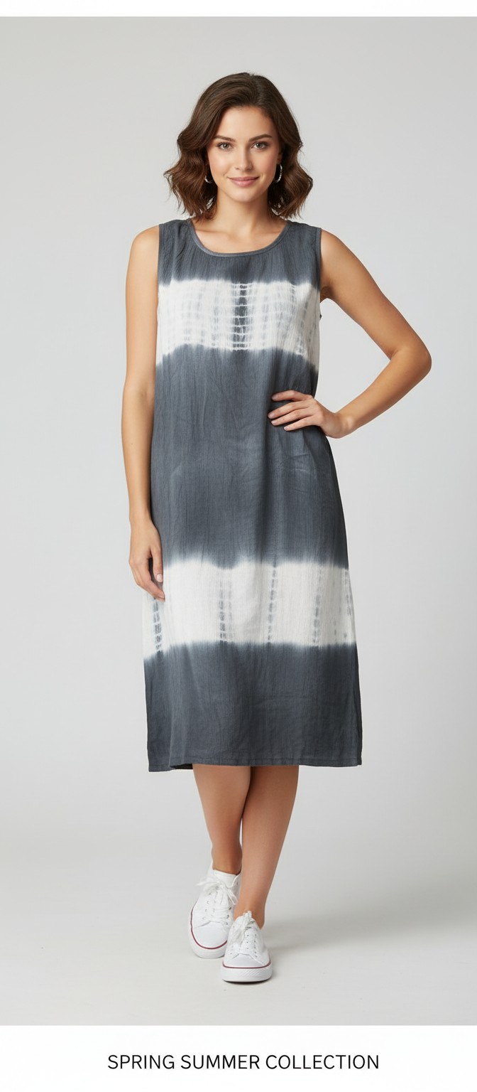 This dress is in cotton crepe fabric. the dress is till knee length.
